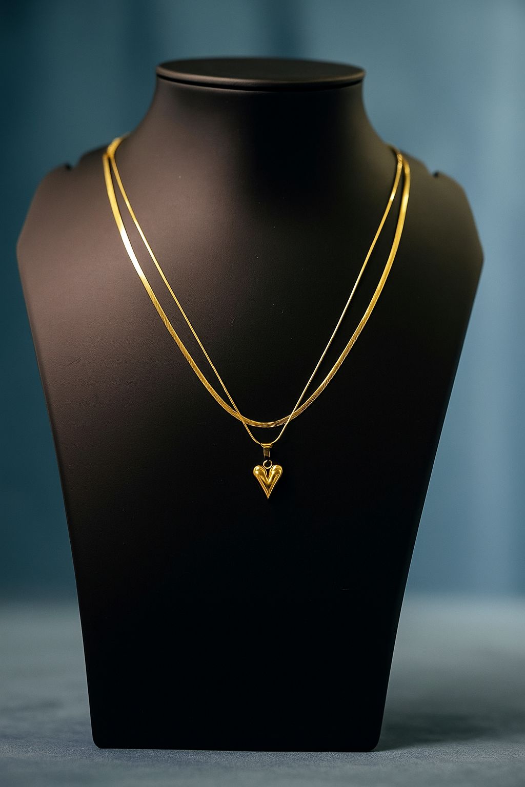 Two chains. One heart. Infinite style. This edgy yet elegant layered gold necklace with a sleek pointed-heart pendant is all about making a bold statement — softly. Wear it solo or stack it for that golden-hour glow.
