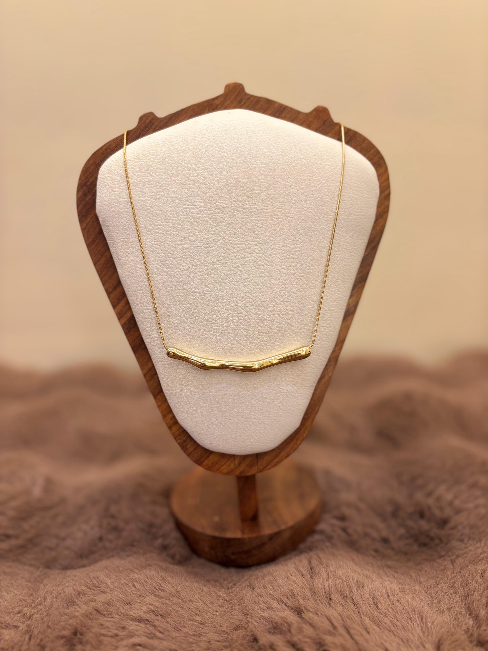 The Terra Bar Necklace is a beautiful ode to nature’s imperfections. Its unique, free-form bar design mimics organic textures, making each piece feel one-of-a-kind. Crafted with an anti-tarnish 18k gold-plated finish, it’s your go-to minimal accessory for effortless chic.